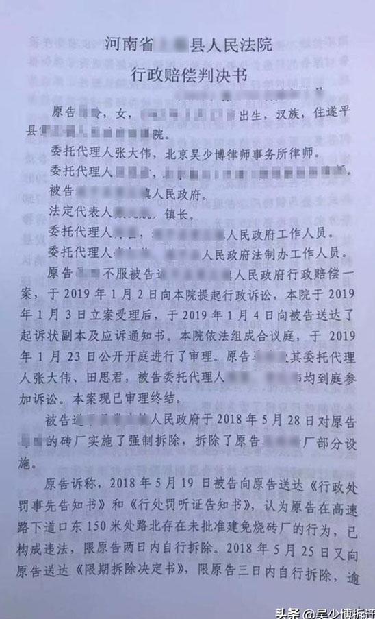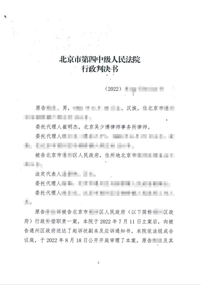 本案代理律師:北京吳少博律師事務(wù)所吳少博律師、石磊律師 本案事實 被告TS區(qū)政府于2019 年