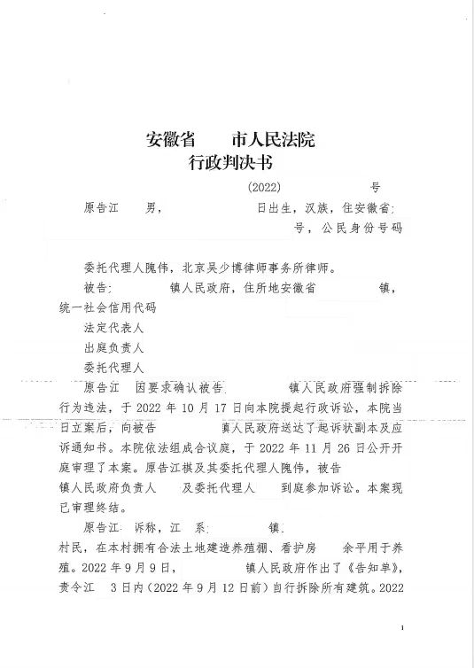 本案代理律師 北京吳少博律師事務(wù)所隗偉 案情簡介: 安徽省某市的江某,曾在村子內(nèi)修建了